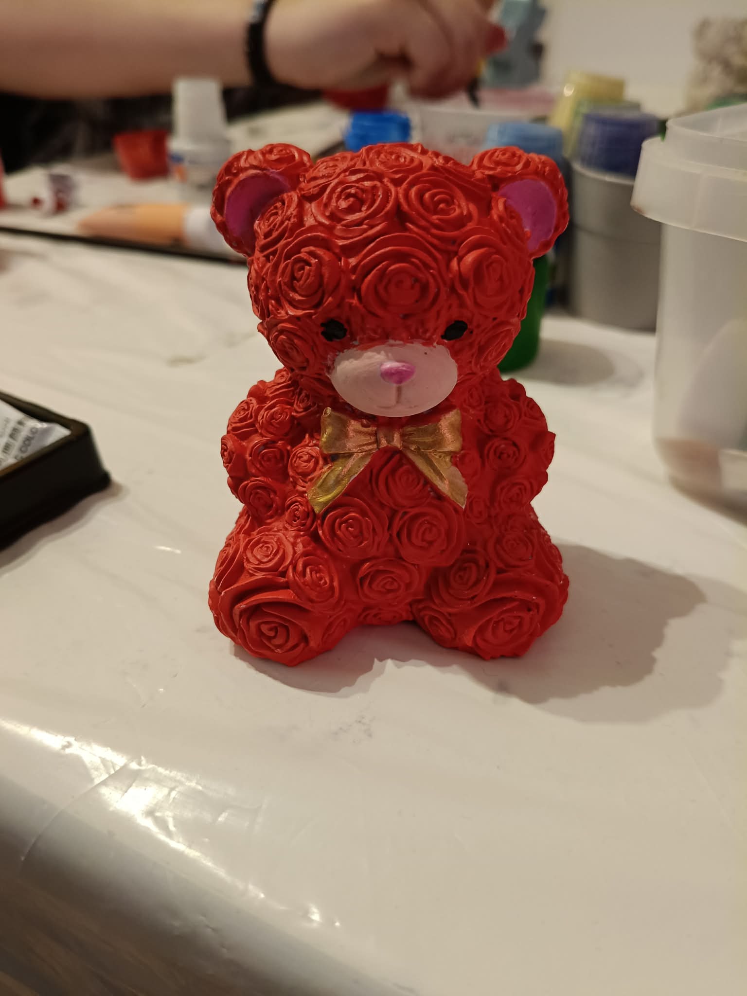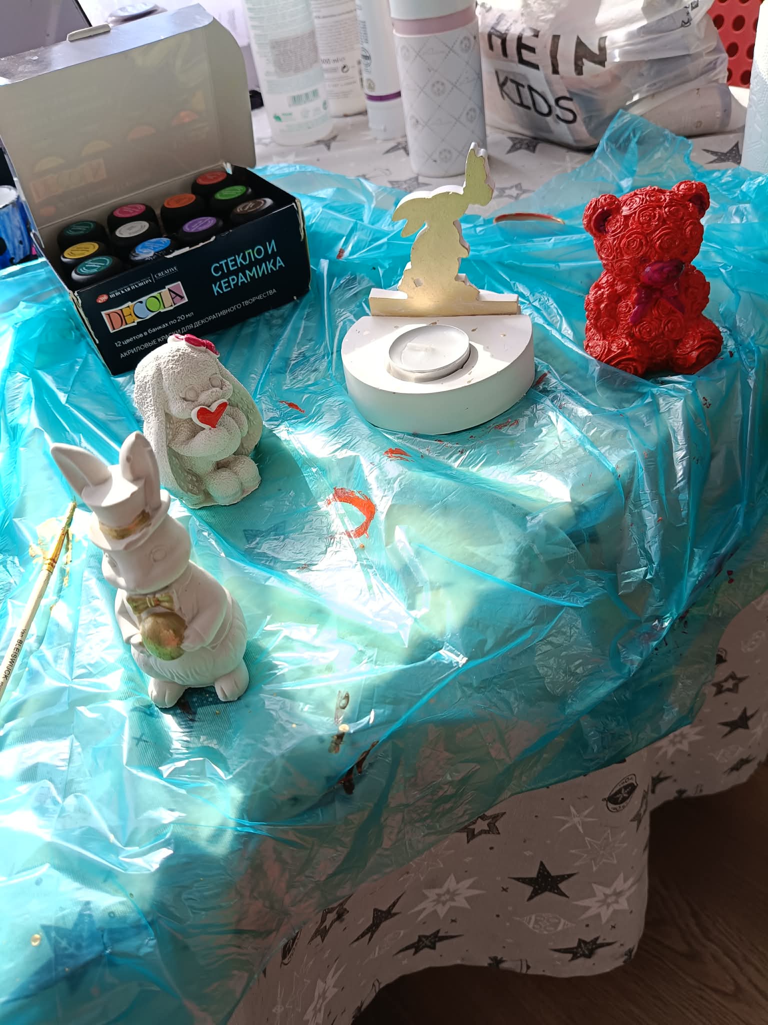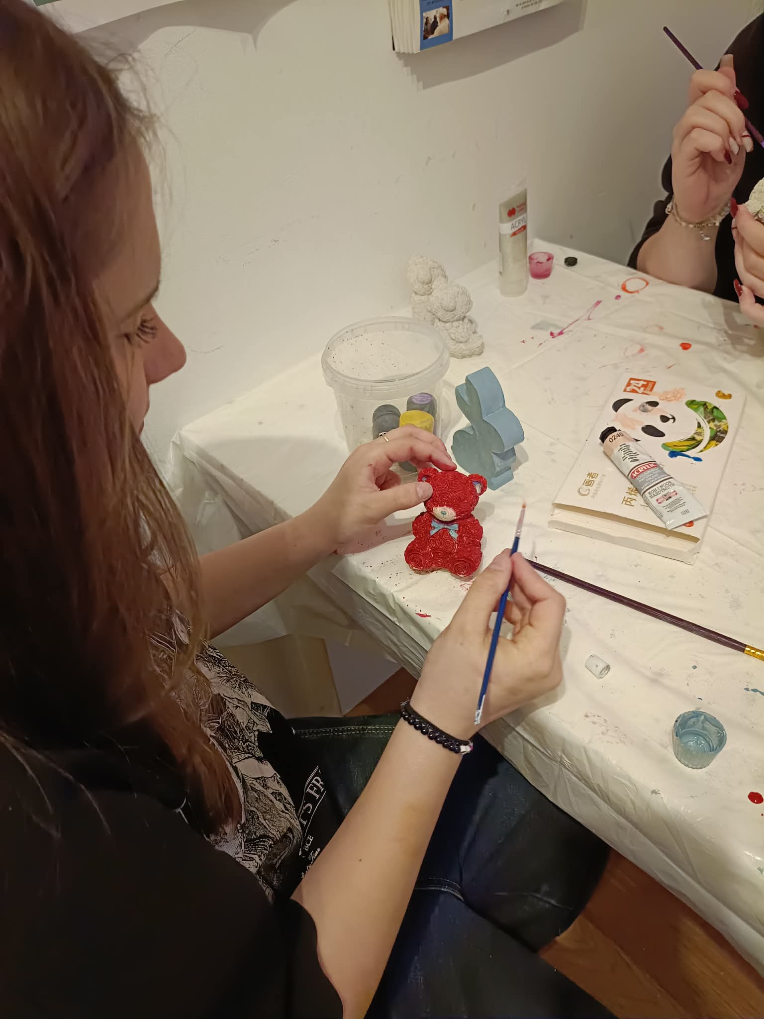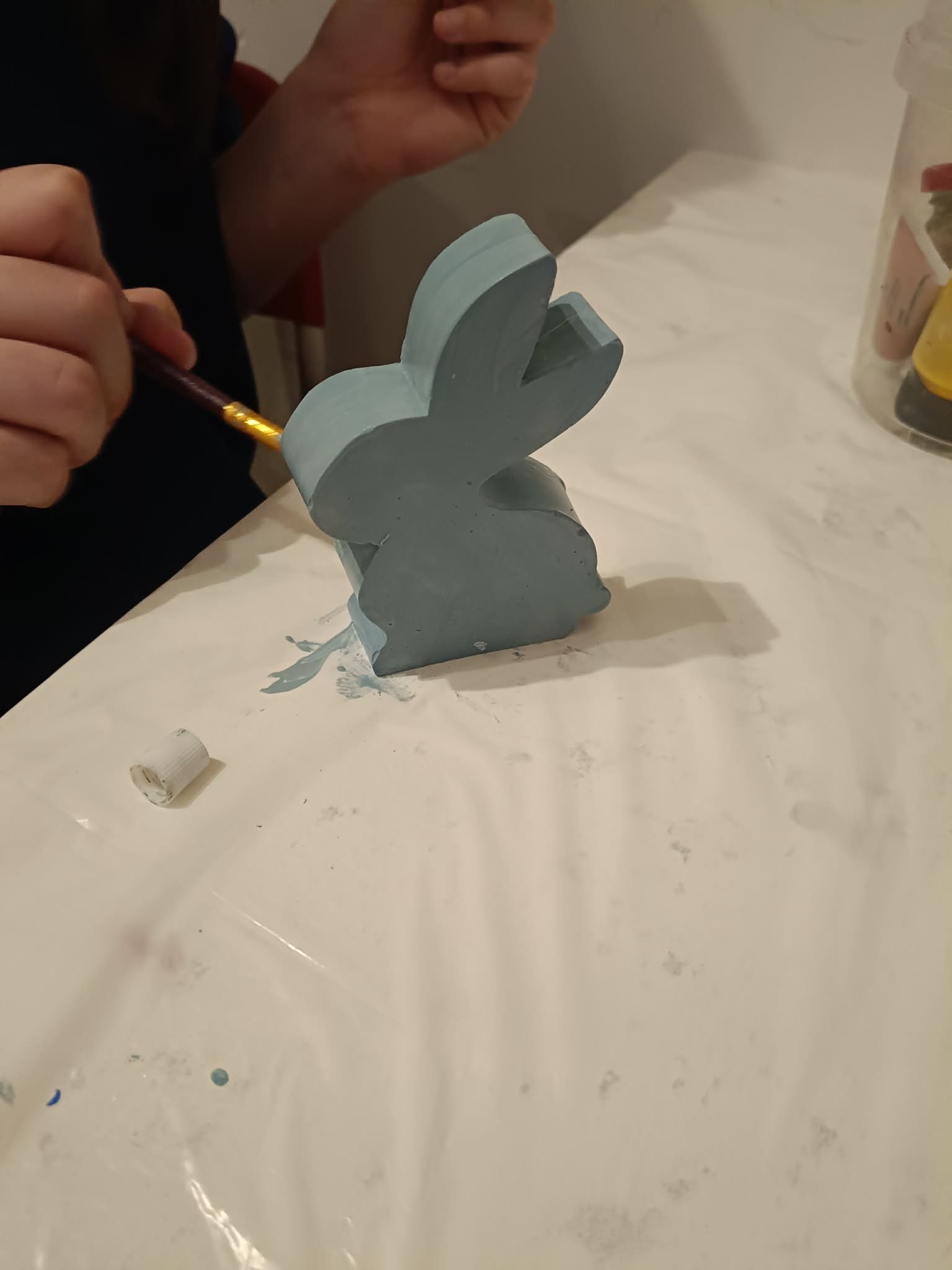 W trakcie zajęć plastycznych malowałyśmy odlane wcześniej przez nas figurki gipsowe.