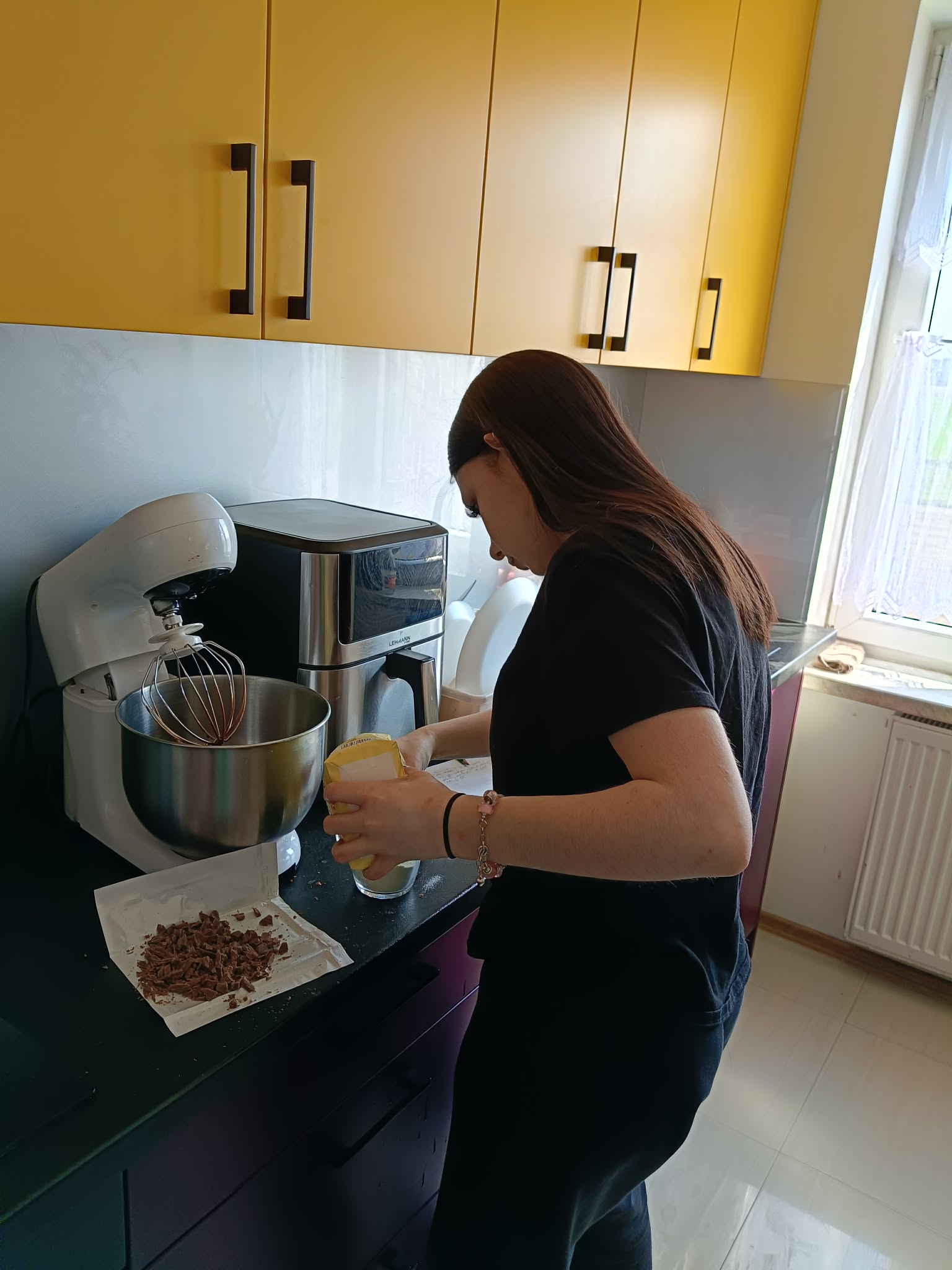 Podczas tych pierwszych piekłyśmy ciasteczka czekoladowe, od których wszędzie unosił się zapach czekolady.