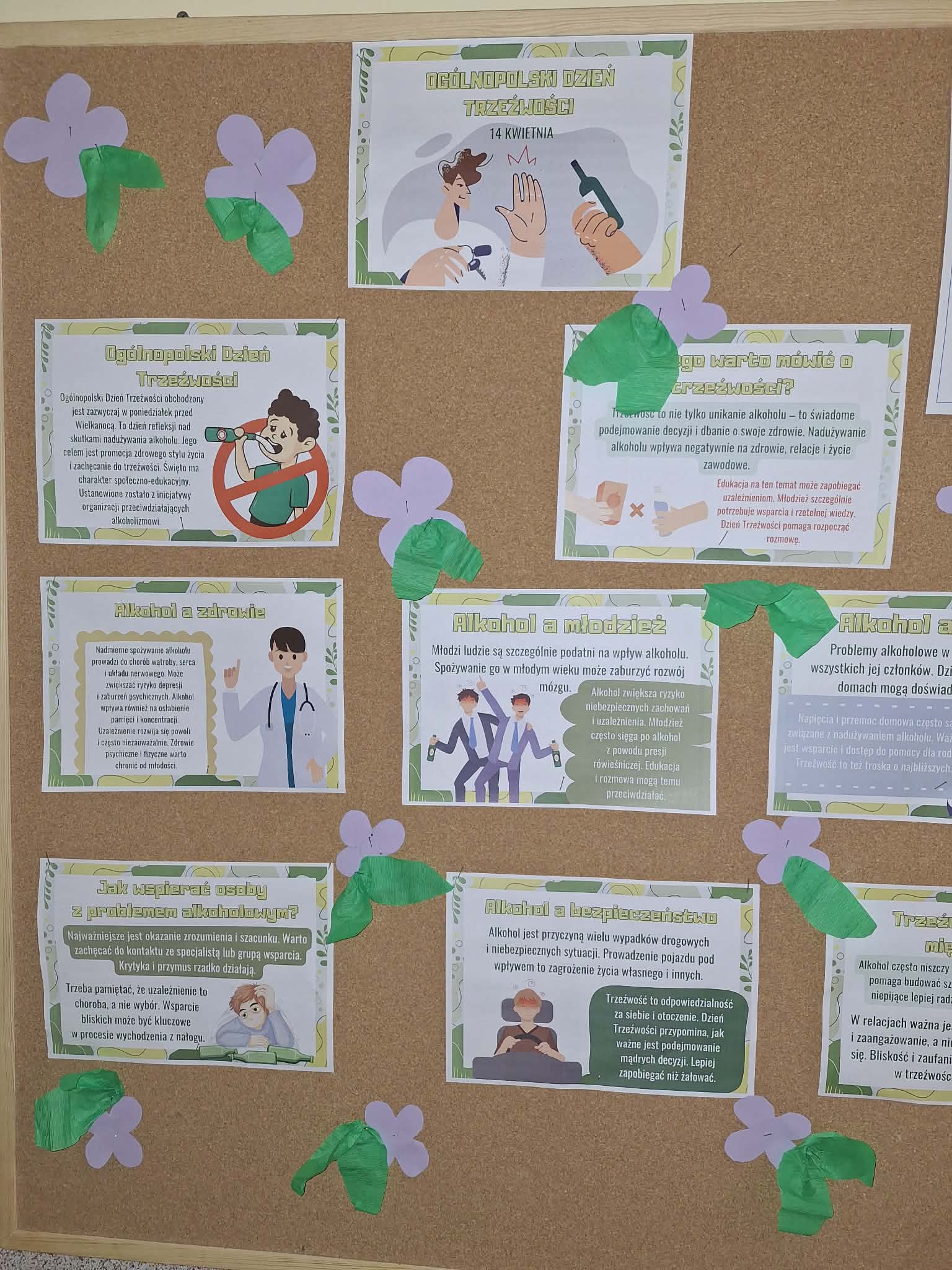 Wczoraj odbyły się zajęcia profilaktyczne związane z Ogólnopolskim Dniem Trzeźwości. Pogadanka i dyskusja na temat trzeźwości zakończyła się wskazaniem przez każdą z nas wartości trzeźwego życia. Efektem zajęć był plakat- drzewo z sercami zamiast liści na których zapisałyśmy nasze przemyślenia na temat trzeźwości.
