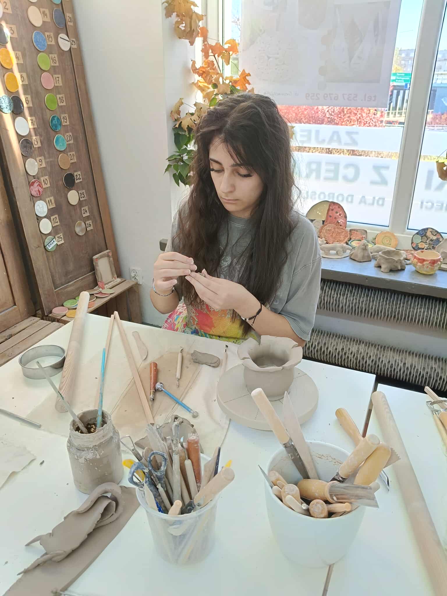 Kreatywny dzień w pracowni ceramicznej!  Dziś ponownie miałyśmy okazję tworzyć małe dzieła sztuki z gliny. Tym razem własnoręcznie wykonałyśmy kubki, cukierniczki oraz kominki zapachowe. Odebrałyśmy również nasze wypalone i wyszkliwione prace z poprzednich warsztatów… Wyszły pięknie!