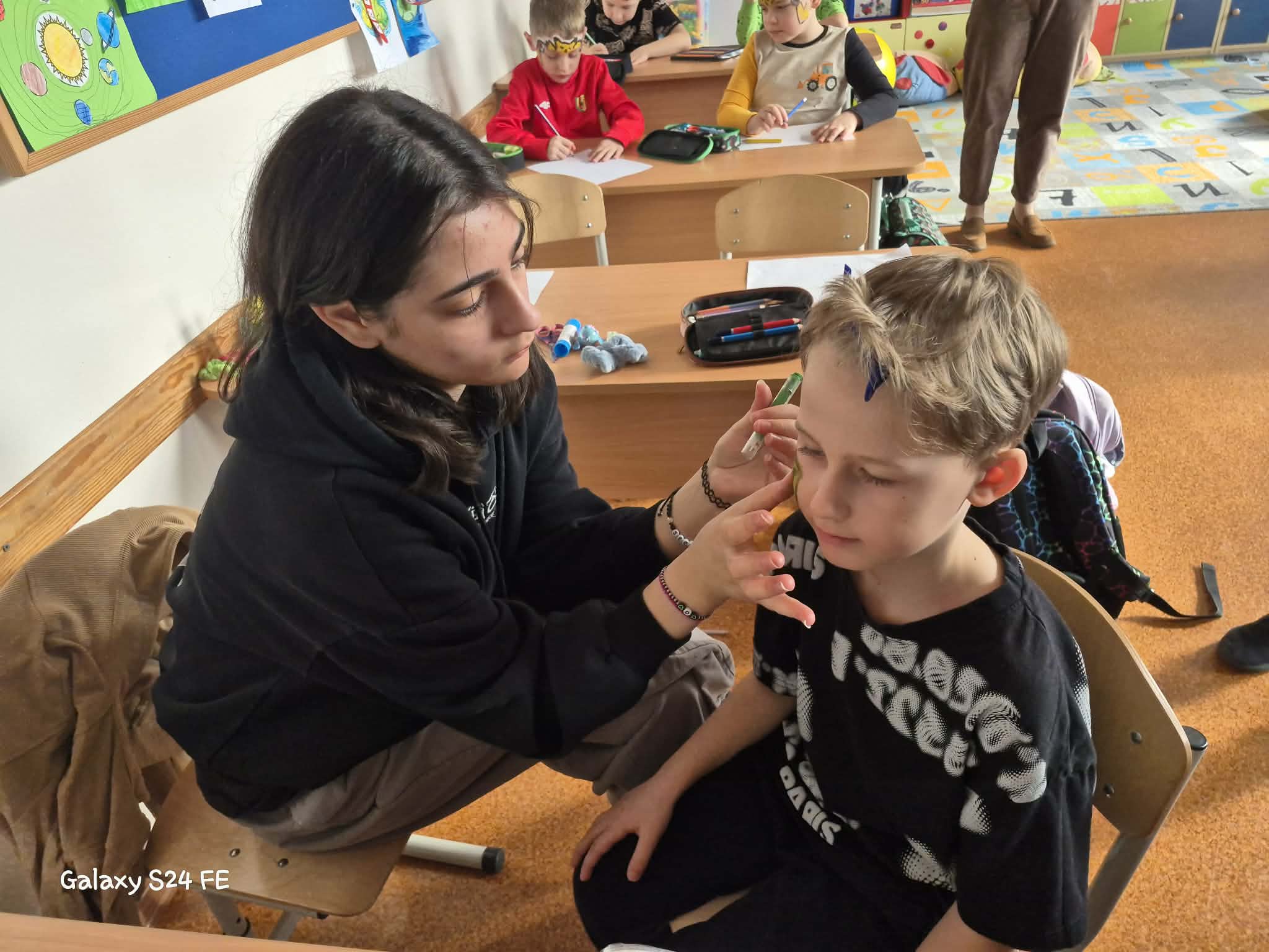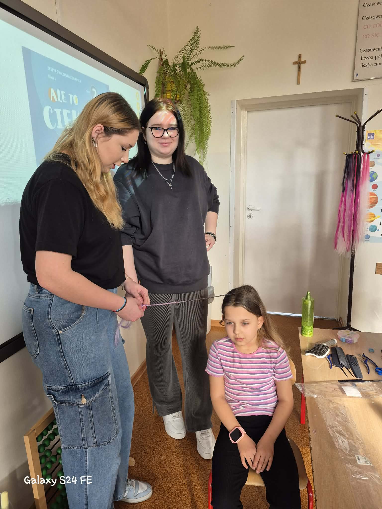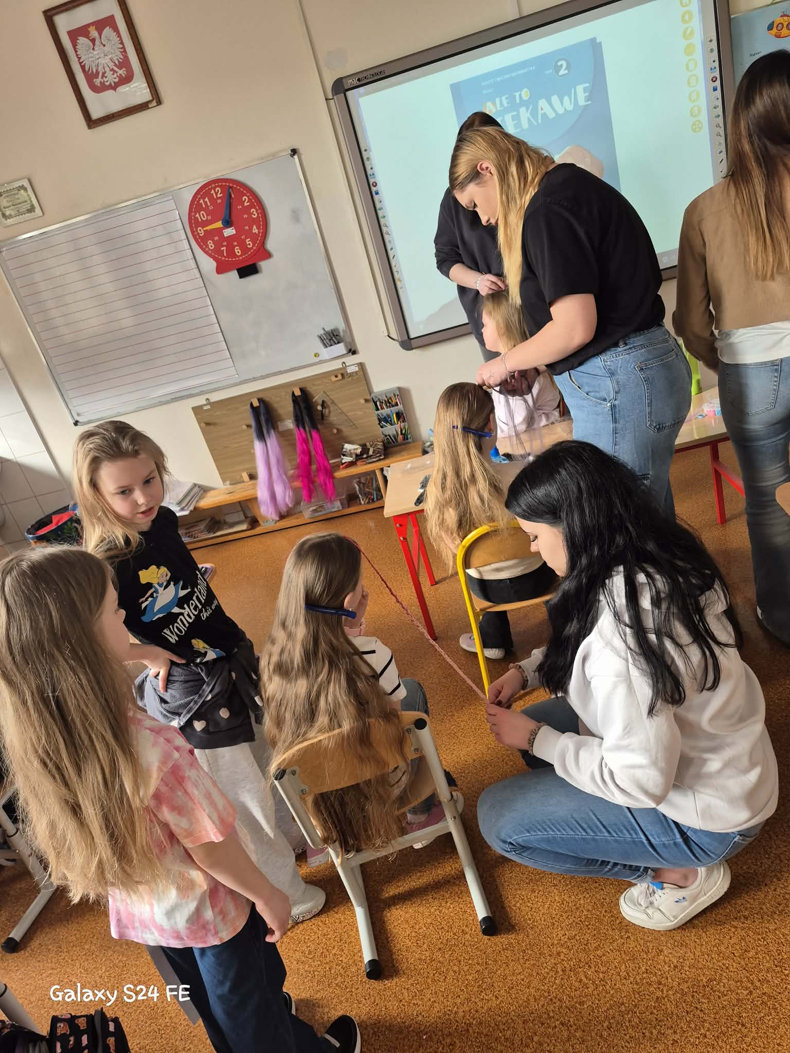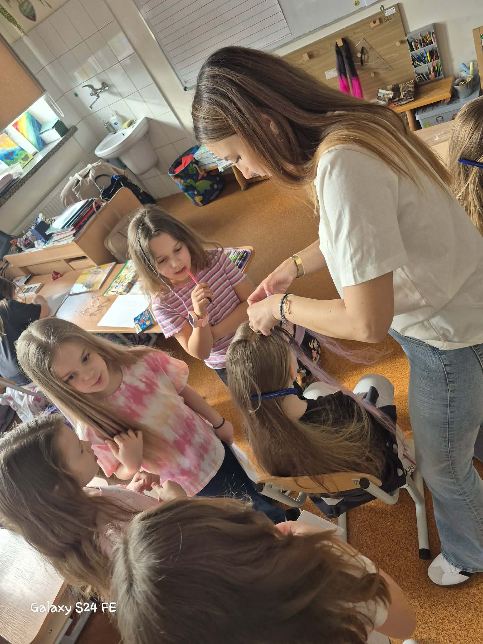 Podczas zajęć uczniowie klasy 1a Szkoły Podstawowej im. T. Kościuszki w Sędziszowie poznali podstawowe narzędzia i techniki fryzjerskie oraz mieli możliwość wykonania prostych fryzur. Nasze uczennice zaplatały dziewczynkom kolorowe warkoczyki, a chłopcom malowały na buźkach maski ich ulubionych bohaterów z kreskówek.